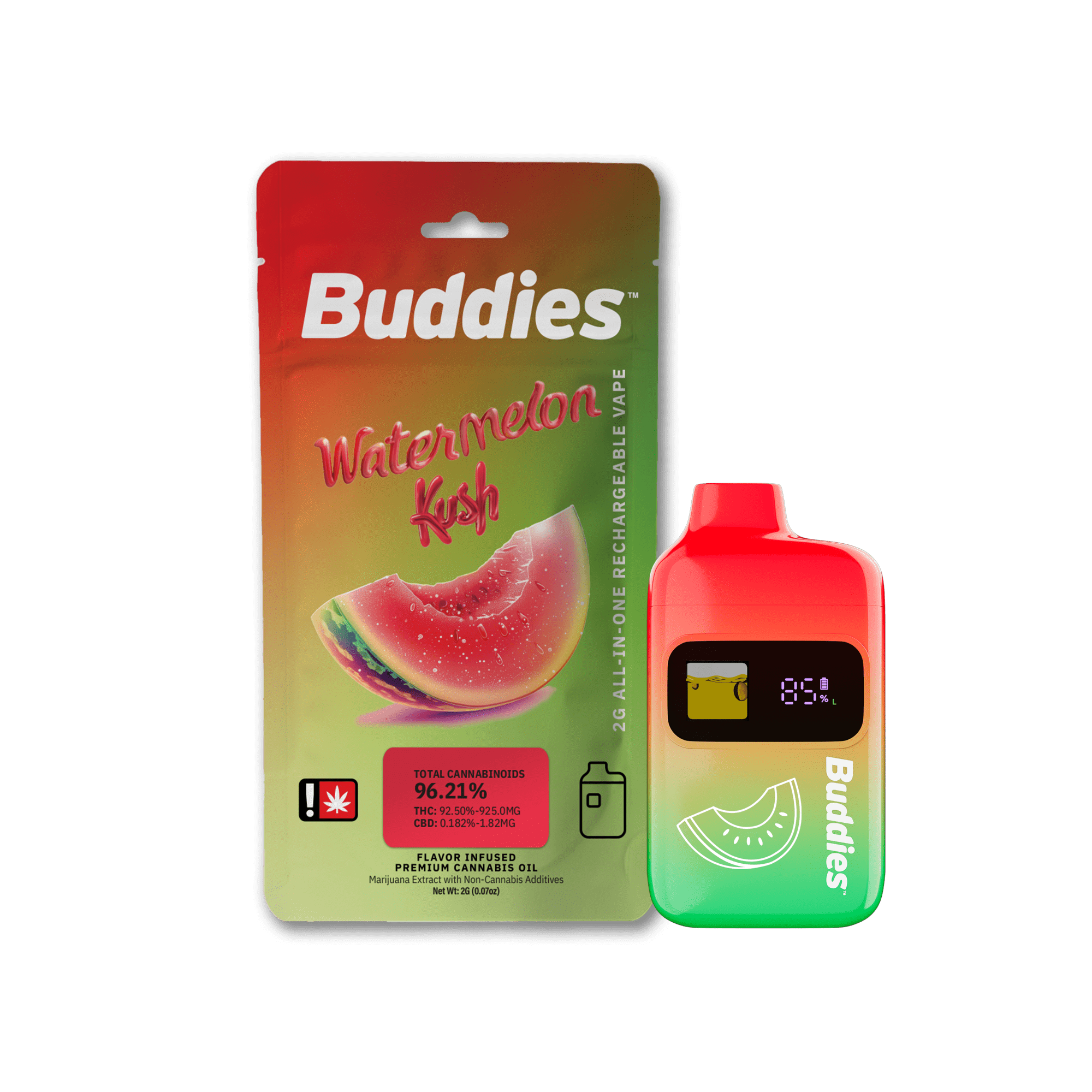 Buddies Brand 2G Flavored AIO Vape – Watermelon Kush