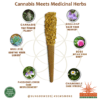 Live Rosin (Melted Strawberries) Infused Flower (Frosted Froyo) with Kief (Strawberry Bubbles), and Herbal allies to open the mind: Chamomile (Ease Stress), Skullcap (Calm your nerves),Rose(Relax your Body),Mullin(Soothe your lungs),Passionflower(ease Restlessness), and Catnip(Relax your mind)